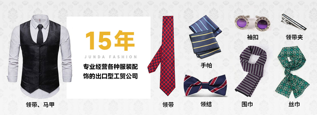 上饒市駿達(dá)服飾有限公司是一家專業(yè)經(jīng)營(yíng)各種服裝配飾的出口型工貿(mào)公司,公司多年來致力各種男女服裝國(guó)際流行配飾的開發(fā)和生產(chǎn),主要產(chǎn)品為領(lǐng)帶、領(lǐng)結(jié)、絲巾、圍巾、手帕、馬甲、背心、箱包皮具、領(lǐng)帶夾、袖扣等,有豐富的內(nèi)外銷經(jīng)驗(yàn)及廣泛的國(guó)內(nèi)外銷售渠道,生產(chǎn)基地管理嚴(yán)格,質(zhì)量過硬,并有一批生產(chǎn)加工企業(yè)長(zhǎng)期合作
